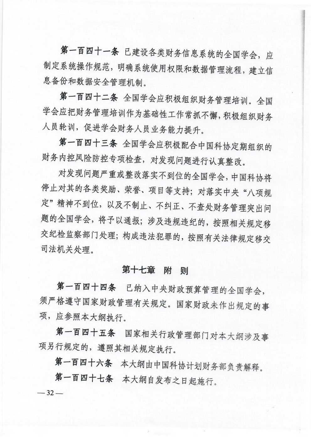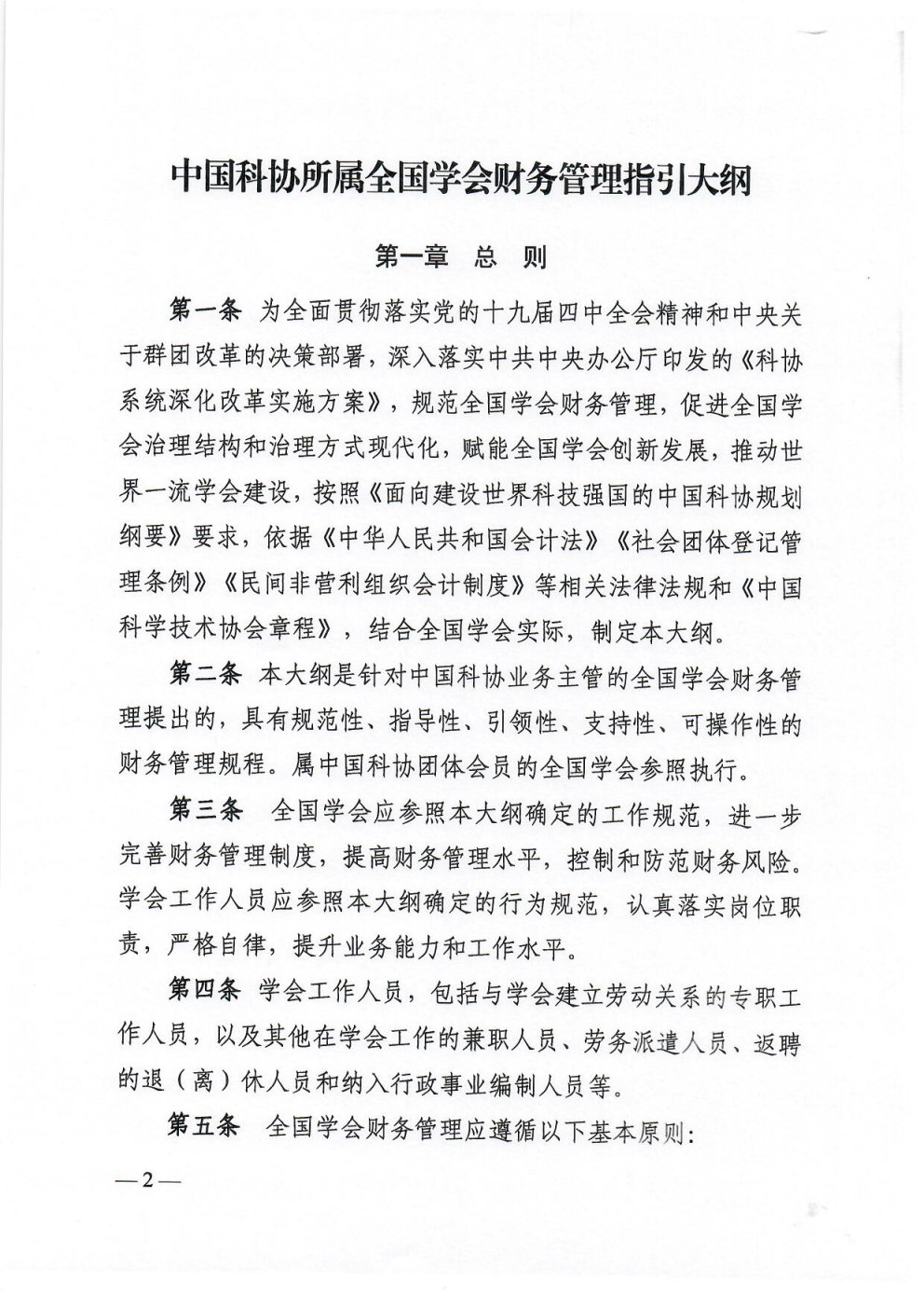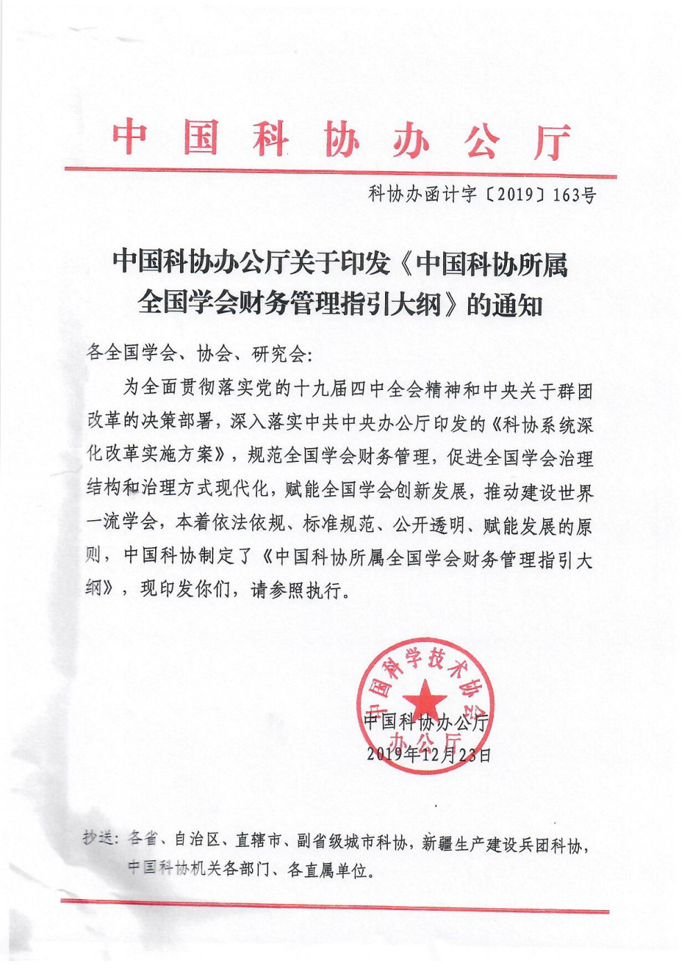 中国科协办公厅关于印发《中国科协所属全国学会财务管理指引大纲》的通知