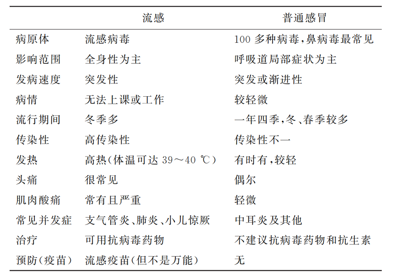 流感与普通感冒的区别 流感可分为甲(A)、乙(B)、丙(C)3型。甲型流感病毒经常发生抗原变异,传染性大,传播迅速,极易发生大范围流行。甲型H1N1流感就是甲型流感的一种。 虽然流感是自限性疾病,有时不经过治疗也可以自行痊愈,但它的危害远远超过其他呼吸道传染病,尤其是婴幼儿、老年人和存在心肺基础疾病的患者容易并发肺炎等严重并发症,从而导致死亡。 1918年,由甲型H1N1流感病毒引发的“西班牙流感”大流行,横扫美洲、欧洲、亚洲,甚至因纽特人聚集区,造成全球超过 5亿人感染,5000万到1亿人死亡,可谓人类历史上最严重的流行病疫情。 即便是在100多年后的今天,人类都还没有完全战胜流感。在美国,上一次较严重的流感季(2014/2015)中,有超过3500万人因流感患病,超过5万人因此死亡。 在2017年末至2018年初出现的流感阶段性高峰中,我国有数个城市(北京、上海、南京、石家庄等)出现了仅一家儿童医院的一日门诊量就超过1万人的情况,国内还一度出现公众“疯抢达菲”“达菲卖断货”的现象。(达菲:磷酸奥司他韦在中国的商品名,是一种作用于神经氨酸酶的特异性抑制剂,可以抑制成熟的流感病毒脱离宿主细胞,从而抑制流感病毒在人体内的传播以起到治疗流行性感冒的作用。) 尽管与1918年大流感相比(感染者的死亡率超过2.5%),现今季节性流感的病死率不到0.1%,但是,流感仍是不可忽视的传染病之一。 流感之所以能够致命,与流感病毒进入人体后,人体的免疫反应有关。 第一步:流感病毒进入人体以后开始快速复制,并损害机体的上皮细胞;面对外来的“入侵者”,白细胞作为人体与病原体斗争的“卫士”也立刻投入战斗——见到流感病毒就砍,很多时候甚至会误伤到“自己人”。 硝烟过后,流感病毒横尸遍野,上皮细胞也损失惨重。上皮细胞受损,机体则会表现为呼吸道充血、水肿,分泌物大量增加,出现咽喉肿痛、鼻塞、流涕、咳嗽等症状。