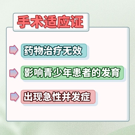 炎症性肠病会反复发作。一般来说,在急性发作的时候,它会充血、糜烂、溃疡、水肿,不发作的时候,炎症或溃疡会减轻,局部颜色会变浅。 随着它的反复发作,由于患者肠道黏膜自身修复、增生,会出现假性息肉、肠管狭窄、肠梗阻等现象。更有一些报道证实,长期炎症性肠病有癌变的风险。 所以炎症性肠病的治疗非常重要,其中有一部分患者,需要选用手术治疗。 一、哪些炎症性肠病患者需要手术治疗? 一般情况下,用药强化治疗后,根本就没有效果,患者反复出现症状,各种状况都很差,比如经常贫血,比如消瘦,患者已经不能耐受了,这时候要考虑手术治疗。 第二就是影响青少年患者的正常发育了,比如青少年用完药之后,效果也不好,孩子的生长发育也受到了影响,就要考虑手术。 第三就是突然出现并发症,比如肠梗阻,比如穿孔,比如大出血,甚至癌变的时候,也要想到手术。 手术也是治疗炎症性肠病(溃疡性结肠炎、克罗恩病)的一个基本方法,它和内科思路是不一样的。 内科一般主张保守治疗,但是外科认为,长期治疗都没有好的效果,干脆就把病变的肠道切掉。