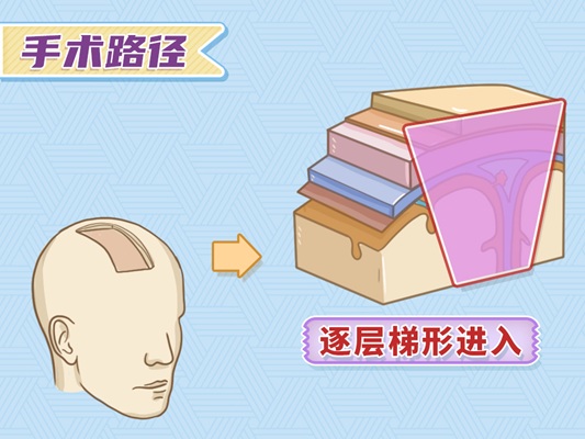 手术开始时,医生会根据患者的具体情况选择合适的手术路径,采用逐层梯形进入的方式,从头皮、颅骨逐层深入到脑组织。这种逐层进入的方法不仅有助于减少手术对周围组织的损伤,也是微创理念在神经外科手术中的具体应用。