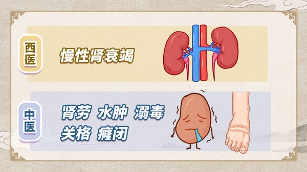 研究显示,中国成人慢性肾脏病的患病率约为10.8%。慢性肾衰竭的年发病率约为0.3%,患病率约为1%,且有逐年增高的趋势。 今天我们来聊一聊,中医对慢性肾衰竭的认识。 一、中医是怎么认识慢性肾衰竭的? 慢性肾衰竭是多种慢性肾脏病发展到后期的一个临床综合征,主要表现是肾小球滤过率下降,代谢废物潴留,以及机体失衡。 中医没有慢性肾衰竭这样一个病名,根据它的临床表现,在中医,慢性肾衰竭可以归属于肾劳、水肿、溺毒、关格、癃闭等等这样一个病名。