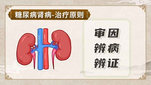 糖尿病肾病,目前也叫糖尿病肾脏疾病,是糖尿病最主要的微血管并发症之一。 在中医里,没有糖尿病肾病这个病名,但是按照糖尿病肾病不同的发病阶段和临床表现,可以归属于中医的消渴、水肿、尿浊、虚劳、关格等范畴。 对于糖尿病肾病的患者来说,中医治疗可以很好地减少蛋白尿,保护肾脏,延缓肾脏疾病的进展,同时可以提高生活质量,延长寿命。 一、中医治疗糖尿病肾病的原则是什么? 中医治疗糖尿病肾病的原则是,审因、辨病、辨证三位一体进行治疗。
