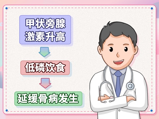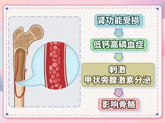 肾脏病引发骨骼病变的途径还包括其他几个方面:一是大量蛋白尿可能伴随使用肾上腺皮质激素治疗,该药物可诱发骨质疏松;二是透析过程中需使用肝素抗凝,肝素亦能导致骨质疏松;三是维生素D与钙在血液中常与蛋白结合,大量蛋白尿会造成维生素D和钙的流失,影响钙的吸收,导致低钙血症,进而刺激甲状旁腺激素分泌,加剧骨骼病变。 综上所述,肾脏病导致骨头病变的主要机制有三:一是肾脏功能受损引起的磷排泄障碍和维生素D缺乏;二是大量蛋白尿导致的维生素D和钙流失;三是治疗过程中的药物(如激素、肝素)使用所引发的副作用。 二、肾性骨病会有什么症状表现? 肾性骨病主要包括三个方面的变化:一是矿物质代谢失衡,如低钙血症和高磷血症;二是骨骼病变;三是软组织钙化。 在肾性骨病的早期阶段,尽管存在钙磷代谢异常和甲状旁腺激素水平的不正常,但通常没有明显的临床症状。一旦骨骼发生病变,患者可能会经历骨痛或骨折等临床症状。 软组织钙化可以影响神经末梢,导致感觉神经纤维受到刺激,进而引起全身瘙痒感。多数情况下,皮肤钙化并不明显,仅少数患者可见皮肤表面出现钙化结节。如果血管发生钙化,血管壁会硬化,这会导致收缩压显著升高而舒张压相对较低,从而导致脉压差增大。 三、肾性骨病怎么治疗? 肾脏病从1期进展至5期的过程中,肾性骨病的发生风险逐渐增加。在1期时,通常尚未出现明显的肾性骨病变化。然而,随着疾病进展至3期、4期和5期,非透析患者发生骨病的概率也随之上升。因此,当甲状旁腺激素水平升高时,应当采取措施控制磷的摄入,以防止血磷水平上升,从而延缓甲状旁腺激素水平的升高和骨病的发展。