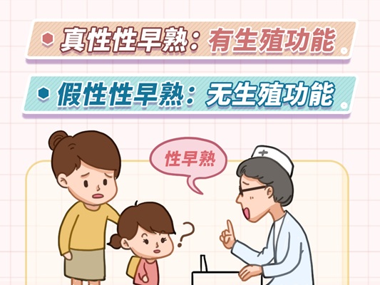 正常孩子的青春发育,一般来说女孩应该是在7.5岁以后,表现为乳房发育,然后逐渐开始出现第二性征,子宫、卵巢开始发育,最后月经初潮;男孩应该是在9岁以后,睾丸开始发育,而后睾丸慢慢长大,阴茎开始发育,长出胡须,出现变声,最后完成性腺发育。 性早熟是怎么来界定的?根据最新的《中枢性性早熟诊断与治疗专家共识(2022)》,女孩7.5周岁以前出现乳房发育或10周岁前出现月经来潮,男孩9周岁以前开始出现睾丸发育,我们就叫做性早熟。 一、儿童性早熟有真假之分吗? 儿童性早熟主要分为两大类,第一类叫做真性性早熟,第二类叫做假性性早熟。 (1)真性性早熟,即中枢性性早熟,是由于下丘脑促性腺激素释放激素分泌,导致下丘脑-垂体-性腺轴启动,从而使内、外生殖器发育和第二性征呈现,其具有与正常青春发育类同的下丘脑-垂体-性腺轴启动、成熟的程序性过程,直至生殖系统成熟。 (2)假性性早熟,也叫外周性性早熟,不依赖于下丘脑-垂体-性腺轴,不具有完整的性发育程序性过程。它是由于外源性的一些因素,如摄入了外源性的性激素,或者人体内某个病变部位产生性激素(如卵巢、肾上腺皮质、绒毛膜上皮等部位发生肿瘤或病毒性脑膜炎后遗症导致性激素大量分泌),引起血液中性激素水平明显升高,导致局部第二性征的提前出现。即假性性早熟,只是第二性征提前出现了,卵巢或睾丸本身并未发育。