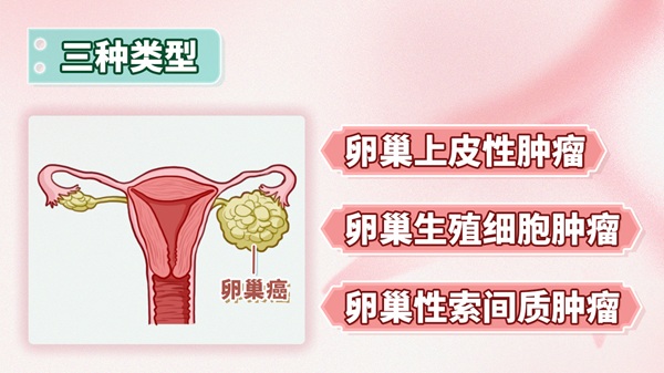 卵巢癌总体来看,发病率在国内排第三位,死亡率在女性生殖系统肿瘤中居第一位,主要有三类不同的组织学类型。 一、卵巢癌主要分为哪三种类型? 卵巢癌主要分为三大类:卵巢上皮性肿瘤、卵巢生殖细胞肿瘤和卵巢性索间质肿瘤。其中,卵巢上皮性肿瘤起源于卵巢表面的上皮细胞,通常被称为卵巢癌;卵巢生殖细胞肿瘤源自卵细胞或其相关组织;而卵巢性索间质肿瘤则来源于卵巢内的性索和间质组织,包括颗粒细胞等。