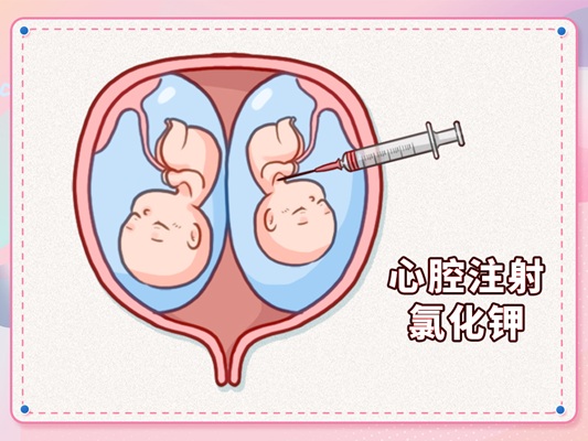 所以减胎实际上有一些医学指征,也有一些孕妇可能是由于社会因素,也就是说并不是由于母体的疾病,或者是胎儿的疾病才减胎的,而是说我自己觉得我只能怀一个,我不想要两个,也是可以减胎的。 二、多胎妊娠做减胎手术是孕几周做?减胎方法都有哪些? 减胎手术一般来讲不超过26周,在不同的阶段去减胎,所用的方法可能也会有一些不同。 因为绝大多数的孕妇想减胎是由于有一胎发生了畸形,而能发现这个胎儿有畸形,基本到中孕期了。中孕期的减胎手术方法,需要看绒毛膜性。 如果是一个双绒毛膜性的双胎,因为两个胎儿是各自独立的胎盘,两者之间没有血流的交通,所以一般采用胎儿心腔内注射氯化钾,或者是胎儿颅内注射氯化钾。氯化钾是一种药物,可以造成心跳停搏,所以它能起到减胎的作用。