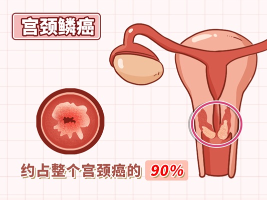宫颈癌是起源于宫颈上皮、宫颈腺体的肿瘤。宫颈上皮发生的肿瘤,叫宫颈鳞癌,大概占整个宫颈癌的90%;宫颈腺体发生的肿瘤,叫宫颈腺癌,大概占整个宫颈癌的10%;腺癌和鳞癌同时存在,叫宫颈腺鳞癌,占很少一部分;还有一些特殊的类型,比如神经内分泌癌、小细胞癌,特别少见,预后也非常差。